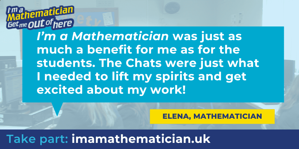 Take part in I’m a Mathematician, Get me out of here and connect with school students in fast-paced, instant messaging-style Chats.